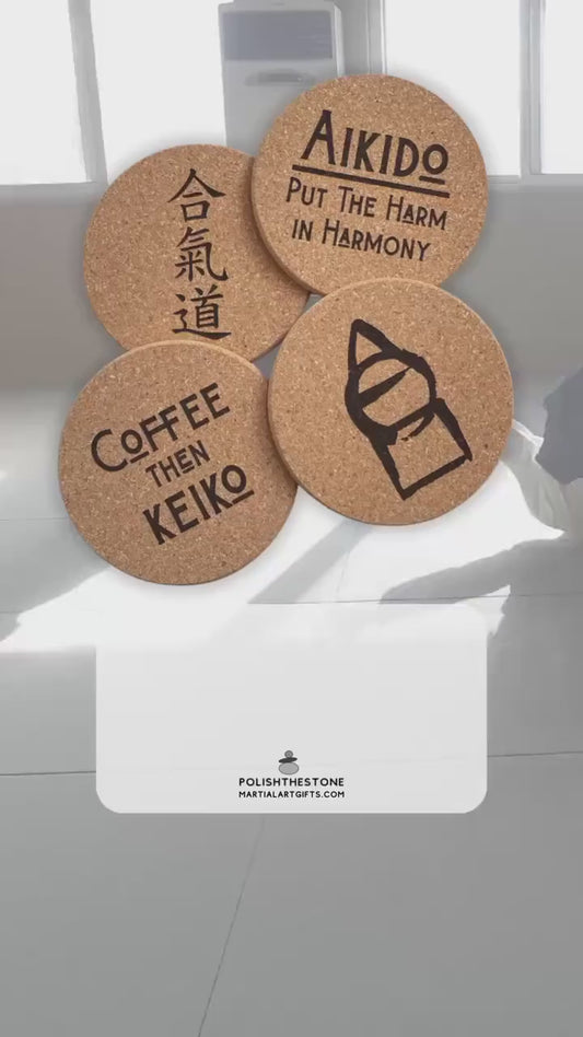 Aikido Coaster Set, Aikido Gift Idea, Gift For Sensei, Engraved Cork
